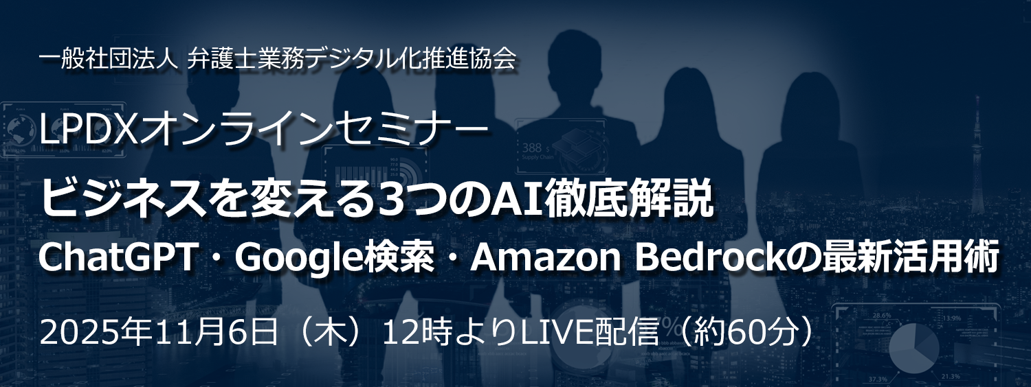 AIの急速な進化により、文書作成やリサーチをはじめ様々な弁護士業務の場面でAIの活用が始まり、効率化が進んでいます。AIで何ができるのか、もっといい活用方法はないのか、AIは安全なのか等々皆様もお悩みではないかと存じます。